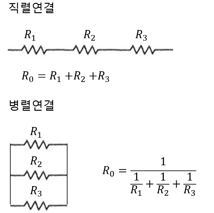 전기저항은 직렬과 병렬로 연결되면서 회로를 구성합니다.