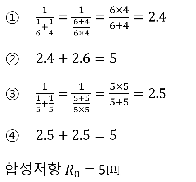 즉 합성저항의 값은 아래 그림과 같이 구합니다.