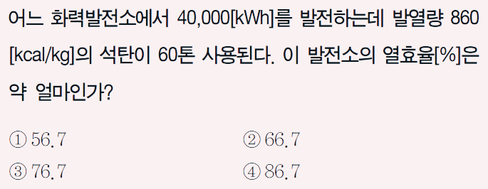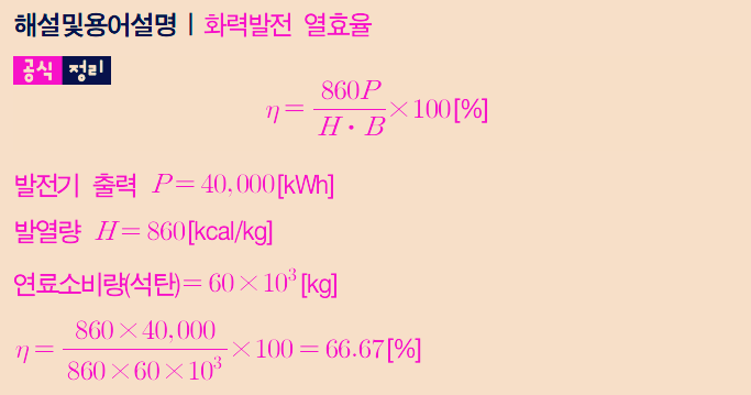오늘 화력 발전에서 출제빈도가 높은 계산문제 열효율 구하는 공식! 꼭 암기해주세요^^